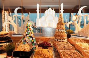 Additional highlights include flavorful main courses served at live stations, where guests can select their preferred ingredients and watch the chefs prepare each dish. The evening concludes with a classic dessert selection, offering a sweet and satisfying end to a memorable Iftar experience.