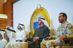 His Highness was accompanied during the visit by H.H. Sheikh Hamdan bin Mohammed bin Rashid Al Maktoum, Crown Prince of Dubai, Deputy Prime Minister, Minister of Defence; H.H. Sheikh Hazza bin Zayed Al Nahyan, Ruler’s Representative in Al Ain Region; H.H. Sheikh Theyab bin Mohamed bin Zayed Al Nahyan, Deputy Chairman of the Presidential Court for Development and Fallen Heroes’ Affairs; Mohamed Mubarak Fadhel Al Mazrouei, Minister of State for Defence Affairs; Lieutenant General Ibrahim Nasser Al Alawi, Under-Secretary of the Ministry of Defence; Hamad Mohammed Thani Al Rumaithi, Military Affairs Adviser to the UAE President; Khaldoon Khalifa Al Mubarak, Chairman of the Executive Affairs Authority; Faisal Abdulaziz Mohammed Al Bannai, Adviser to the UAE President for Strategic Research and Advanced Technology Affairs; and a number of senior officers of the Ministry of Defence..