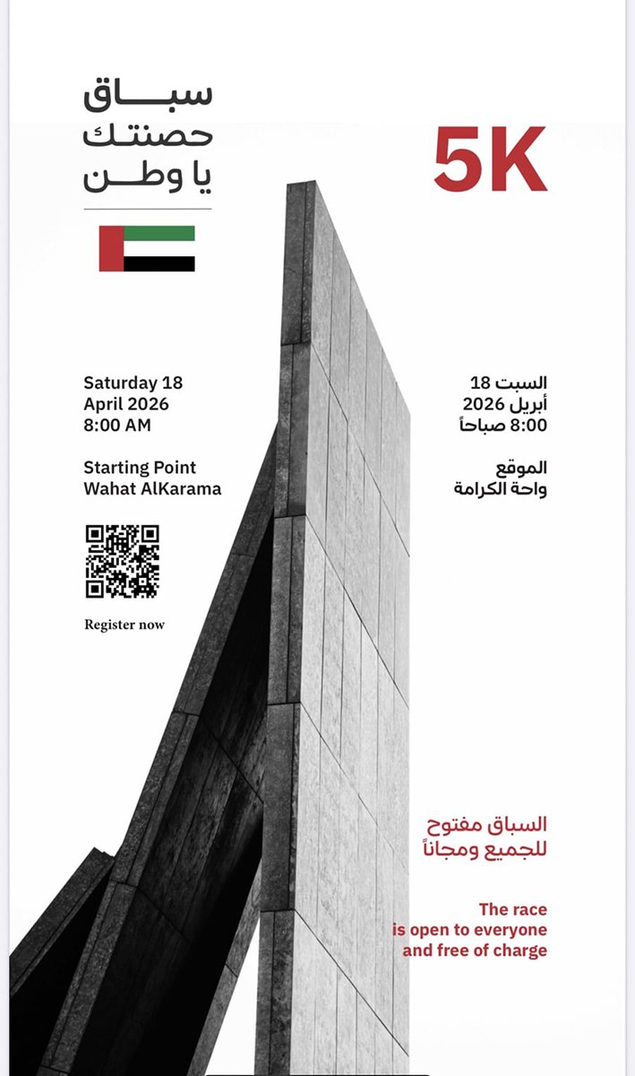 The organising committee stated that the race titled “I fortified you, my homeland” aims to enhance community awareness of the importance of physical fitness, while reinforcing values of belonging and loyalty to the nation. The event carries a symbolic significance that reflects appreciation for the sacrifices of the martyrs commemorated at Wahat Al Karama, one of the UAE’s major national landmarks.